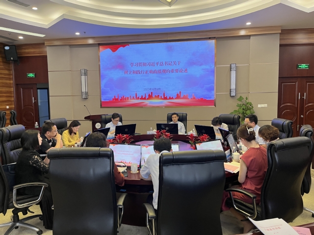 与会成员共同学习了“习近平总书记关于树立和践行正确政绩观的重要论述”,由党委常委、宣传部部长、主题教育领导小组办公室副主任李兆伟领学。他从习近平总书记这样教育引导党员干部树牢正确政绩观、树立和践行正确政绩观起决定性作用的是党性、推动树立和践行正确政绩观三个方面通过举例等方式进行深入浅出阐述,要求各二级党组织把树立和践行正确政绩观贯彻到调查研究、推动发展、检视整改、建章立制之中。