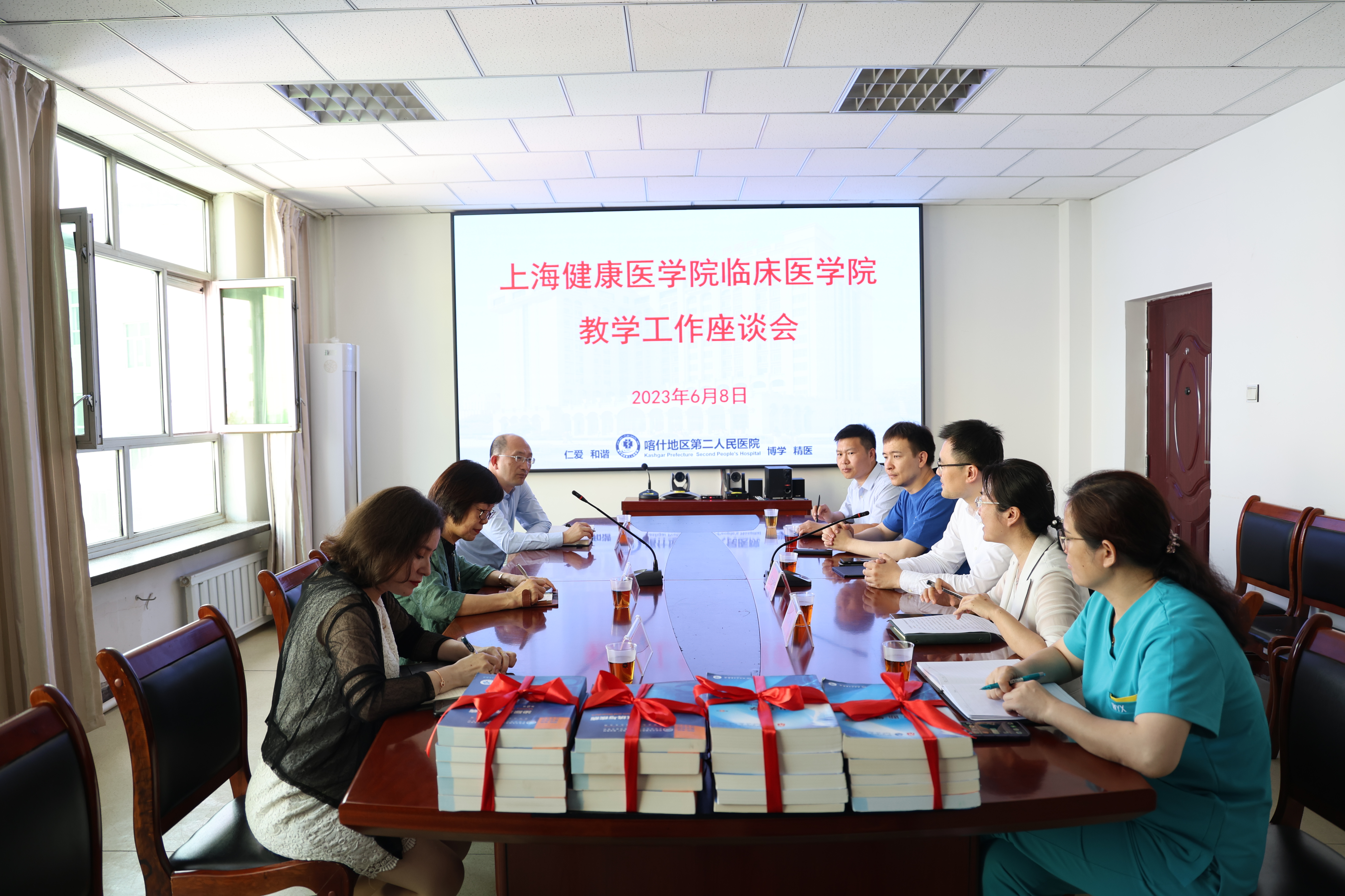 在喀什二院期间,先后召开了教师座谈会、学生座谈会,走访看望了2022届毕业生。喀什二院陈天翔副院长、院长助理兼科教处主任裴晓黎、临床教学负责人和管理人员、临床教师代表、学生代表等参加了座谈。从医院订单定向人才培养、教育教学改革、教学过程管理与督查、教师培养与激励等方面进行了充分地讨论,在后续建设发展达成共识。喀什二院科教院区占地面积6000平方米,配备学生宿舍和考试与技能培训中心,为临床教学提供了坚实的保障。蔡巧玲在交流过程中对教师发展进行了指导,并赠送了一整套由人民卫生出版社出版的第九版临床医学教学用书,受到教师的极大欢迎。学生在座谈会中表示,希望能够继续喀什地区的订单定向培养项目,为南疆地区培养更多的临床医学人才,以进一步提高人民健康服务能力。