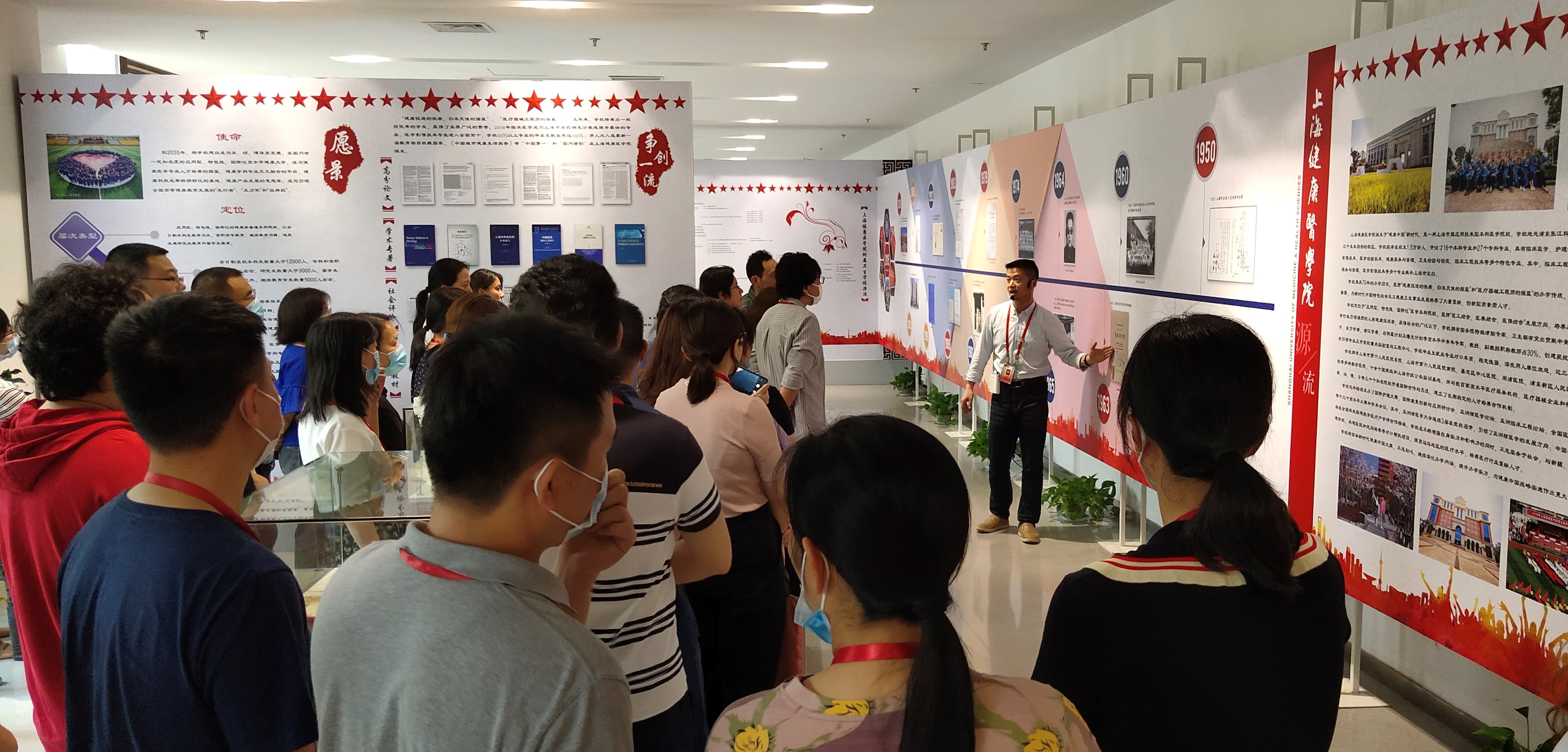 参观完“校史”展览之后,全体人员移至图书馆五楼会议室集中就参观之后进行交流谈体会,图书馆龚瑞怡老师参观学校办学70周年图片展后感受到“图片提示的是过去静止的人和事,背后却是无数个流动的故事,精神的传承。重温上健医校史,使我们强烈感受到学校服务国家“健康中国”战略的使命和担当,感受到每个健康人五年来不懈奋斗的历史自觉,也展现了学校在未来坚持内涵发展、特色发展的坚定信心”。人事处范绮文老师谈到“参观学习了校史展览,从主题展中我看到学校与国家同步的发展史,这一发展充分体现了人民对美好生活追求的向往”。财务处薛峰老师则是通过自己所看所经历的一切向在座的所有员工介绍了浦东校区的发展史,不仅感叹“发展不仅仅是学校在发展,是整个社会共同在前进”。信息管理中心的王毅老师谈到“今天我们的看的是校史展,其实更看到的是自我变化,上海的发展变化,国家的日益强大的变化。要常回看走过的路、比较别人的路、远眺前行的路,深刻认识现在的学校取得的这份成绩来之不易、新中国来之不易、中国特色社会主义来之不易,作为党员的我们要进一步增强“四个意识”、坚定“四个自信”、坚决做到“两个维护”,切实做到理论上清醒和政治上坚定”。