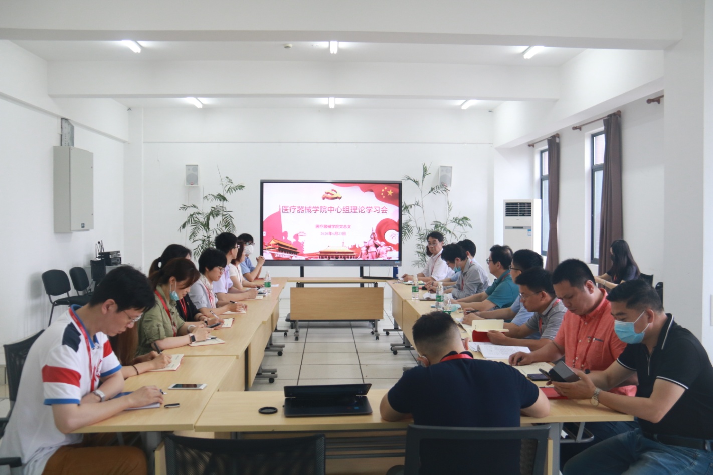 6月23日上午,医疗器械学院在新南苑18号楼506室召开中心组理论学习会,宣传部、纪委办以及学院党政班子成员、党总支委员、党支部书记、工会主席、团总支书记、教研室主任、科级干部等参加了学习,会议由学院党总支李晓欧书记主持,学院胡兆燕院长作了“四史-改革开放史之高等教育”作了报告。