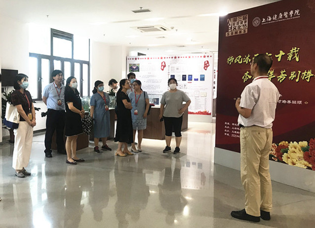 耿铭主任亲自担当解说员,以翔实的历史资料、热情的解说技巧,带领大家参观了“栉风沐雨七十载 杏林群芳别样红”主题展。主题展以时间为脉络,全面反映了学校在七十年医学人才培养的历史中,所走过的曲曲折折的发展历程;系统总结了beat365官方网站建校五年来凝心聚力、艰苦创业、砥砺前行所取得的经验和成绩。从主题展中可以看到学校与国家同步的发展史,充分体现了人民对美好生活追求的向往。1950年,由陈毅市长签发成立上海市卫生人员训练所;1970年上海市卫生学校整体搬迁云南楚雄;2015年,由三校合并组建成“beat365官方网站”,既有“中国护士之母”伍哲英的点滴故事,也有荣归beat365历史传承的“西迁精神”。总结七十年办学历史,那一件件承载着学校建设发展的重大历史事件中,回首医学人才培养的艰辛历程,回顾立德树人教书育人的经验,既是对一代代健康人辛勤付出的肯定,又有助于形成追求卓越的文化自信,更是对学校美好明天发展的憧憬。总结凝练“校四史”,不仅仅让我们了解学校昨天、把握学校今天、开创学校明天,而且让我们主动融入到医学及教育的改革洪流中,在健康中国的难得机遇中,积极彰显健康医学院的历史担当与责任。记初心,担使命,一代代将我们的事业薪火相传,生生不息。