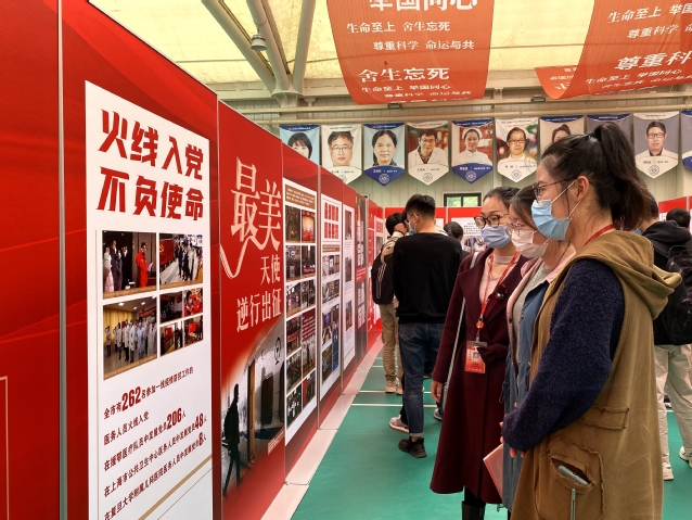 本次专题展览讲述了上海教卫系统抗击疫情的感人故事和beat365抗击新冠肺炎疫情纪实,展览共分为四部分,第一部分:党有号召,星夜驰援。艰难时刻,危难之时,市教卫工作党委按照党中央和市委要求,抓好动员部署,强化行动自觉,加强统筹指导,落实关心关爱。第二部分:前线后方,精诚克敌。疫情发生以来,广大医护人员以精湛艺术和高尚医德积极救治病患;系统各单位集成多学科力量,集中开展抗疫科研攻关;教师学生加强健康宣传,推动提升市民防疫意识和防疫能力。第三部分:联防联控,众志成城。面对疫情防控和城市发展的重大考验,全市教育卫生系统以对人民高度负责、对城市高度负责的精神状态和使命担当,构筑起联防联控抗击疫情的铜墙铁壁。第四部分:立德树人,同心报国。疫情发生以来,各级各类学校将疫情防控与育人工作结合,创新开展在线思政教育,不断增强师生抗疫信心。