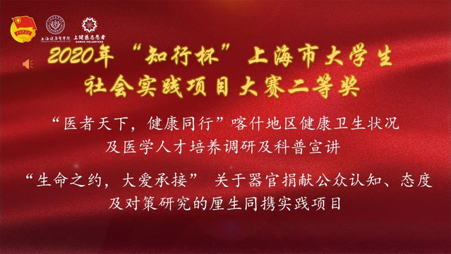 大会上2020年“知行杯”上海市大学生社会实践项目大赛二等奖获奖团队“医者天下,健康同行”--喀什地区健康卫生状况及医学人才培养调研及科普宣讲学生代表李雪菲发言,分析喀什“医疗痛点”,并通过线上线下结合进一步解决问题。第二届上海市卫生健康行业青年志愿者服务项目大赛获奖团队指导教师吴学平老师对“探索人体奥秘、传播健康理念”项目进行简短分析,从社会各类人士入手,分类进行健康理念的传达。