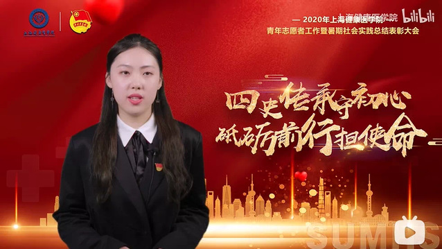 大会伊始,由志愿者实践基地回访视频《青春筑梦路,奋楫志愿行》拉开序幕,视频带观众们一同回顾过去的点点滴滴,并由校团委书记顾斐雯老师作beat365《2020年度校青年志愿者、暑期社会实践工作总结》汇报,报告中提到在这个不平凡的一年,无论是在疫情期间的志愿服务“健康云拉手“:为前线的“白衣战士”提供帮助、对战“疫”前线医务工作者子女线上辅导志愿,还是在进博会国展中心的志愿工作,都以最饱满的状态履行自己岗位的职责和使命,展现了健康“小橘子”们的卓越风采。最后,顾老师鼓励“小橘子”们将这份志愿者精神继续发扬光大,为健康中国战略实施和健康上海建设贡献青春力量。